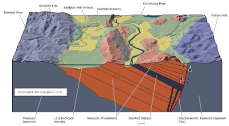 Walking the trails from the parking lot reveals what appears to be the Fordham Gneiss (the g is silent and gneiss is pronounced "nice"). Fordham Gneiss is a high-grade metamorphic rock formed during the Grenville orogeny (an orogeny is a mountain building event) a bit over a billion years ago. It was formed from high temperature and pressure alteration of sediments and volcanic material (probably associated with a volcanic island arc) caught up in a massive collision between proto-North American (called Laurentia) and, we think, a block of crust called Amazonia. This collision formed Himalayan-scale mountains right here on what was an ancient supercontinent called Rodinia (hundreds of millions of years prior to the later supercontinent of Pangaea).